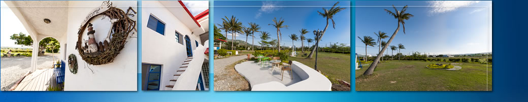 拱門迴廊 半圓扇窗 白牆 階梯 紅磚地板 水景庭院 花草植栽 綠草如茵 讓這裡充滿慵懶又浪漫的南歐度假風情 幾乎每個角落都有漂亮風景 每個房間都有觀景窗 白天可以坐享綿延無際的草原風光 到了夜裡賞月數星星 簡單卻又幸福 是心情使然 還是藍白風情無可抗拒 讓你的視線無法轉移而停留 是盎然綠意的大草地 還是南國的慵懶悠閒氣息 讓您的心情雀躍而無法平息
