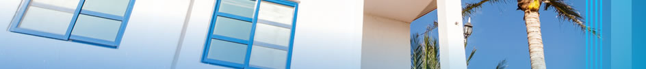 藍白風情的建築 典雅的美麗水池 在靜謐蔚藍天空襯托下 份外潔淨